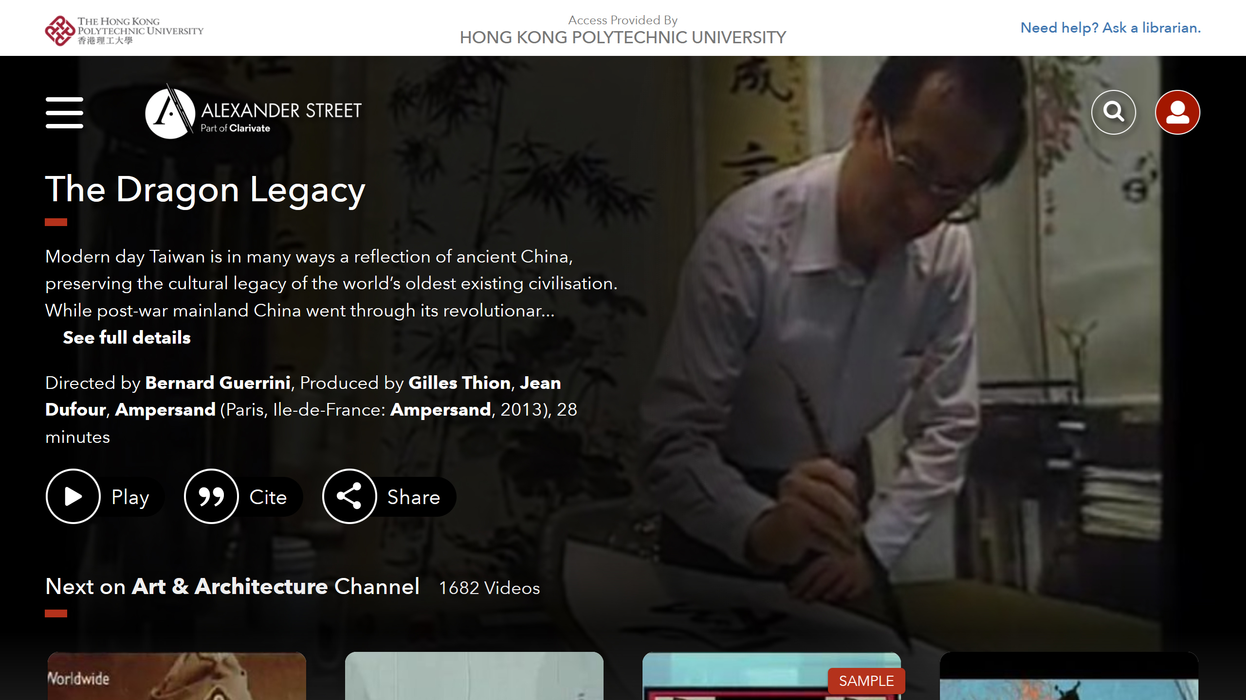This 28-minute documentary shows how calligraphy, painting, and opera have become highly refined as art forms meticulously preserved for centuries. Witness how philosophy and religion, from Confucius to Taoism, continue to permeate daily life.