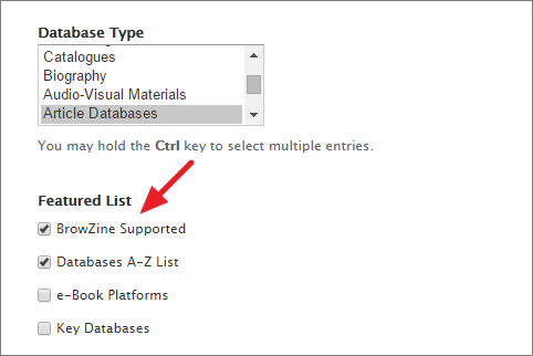 Scroll down and find "Featured List", check "BrowZine Supported" to enable the widget for the page, or uncheck it to remove the widget.