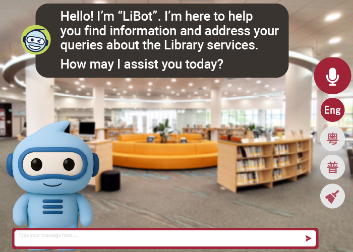 Our LiBot Virtual Avatar now supports natural voice conversations in Cantonese, Putonghua and English in addition to text input. This upgrade enables multilingual assistance for enquiries, making library help more accessible and human-like. You can try the enhanced LiBot service at the Podium Service Counter or at the kiosk near the Library entrance.