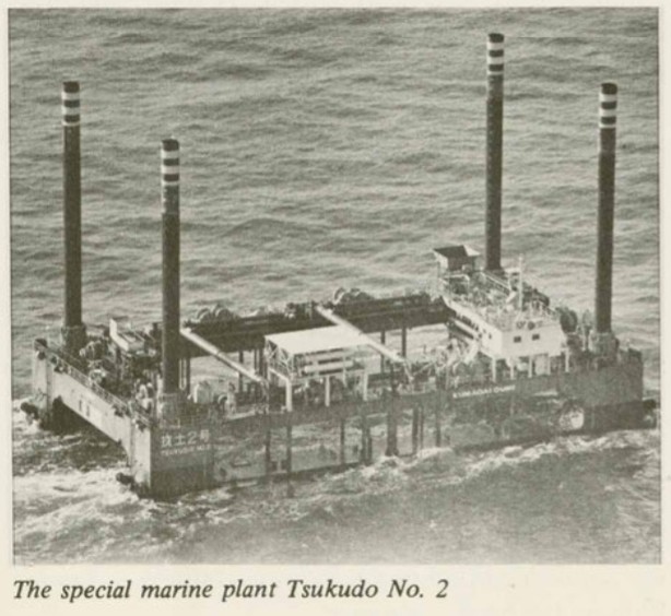 These units were placed on a screeded harbour floor to form the foundation and were submerged using a specialised marine vessel called Tsukudo No. 2.