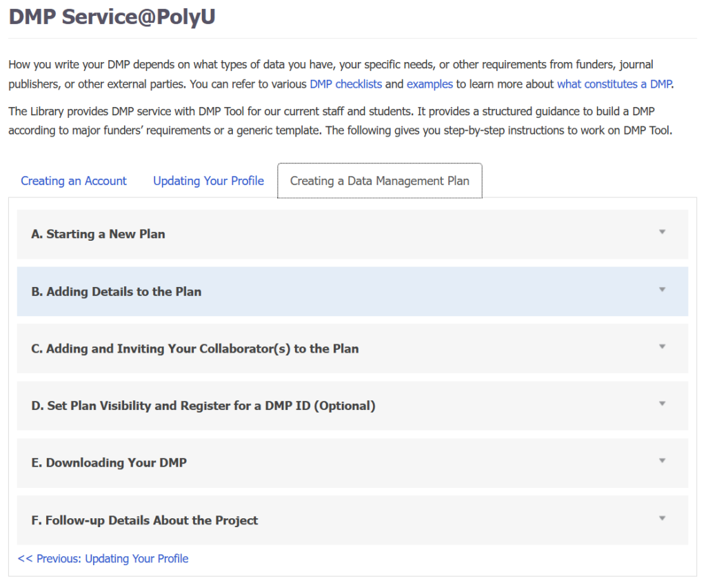 - Privacy and Sharing Options: Keep your DMP private or share it with PolyU members or the public.