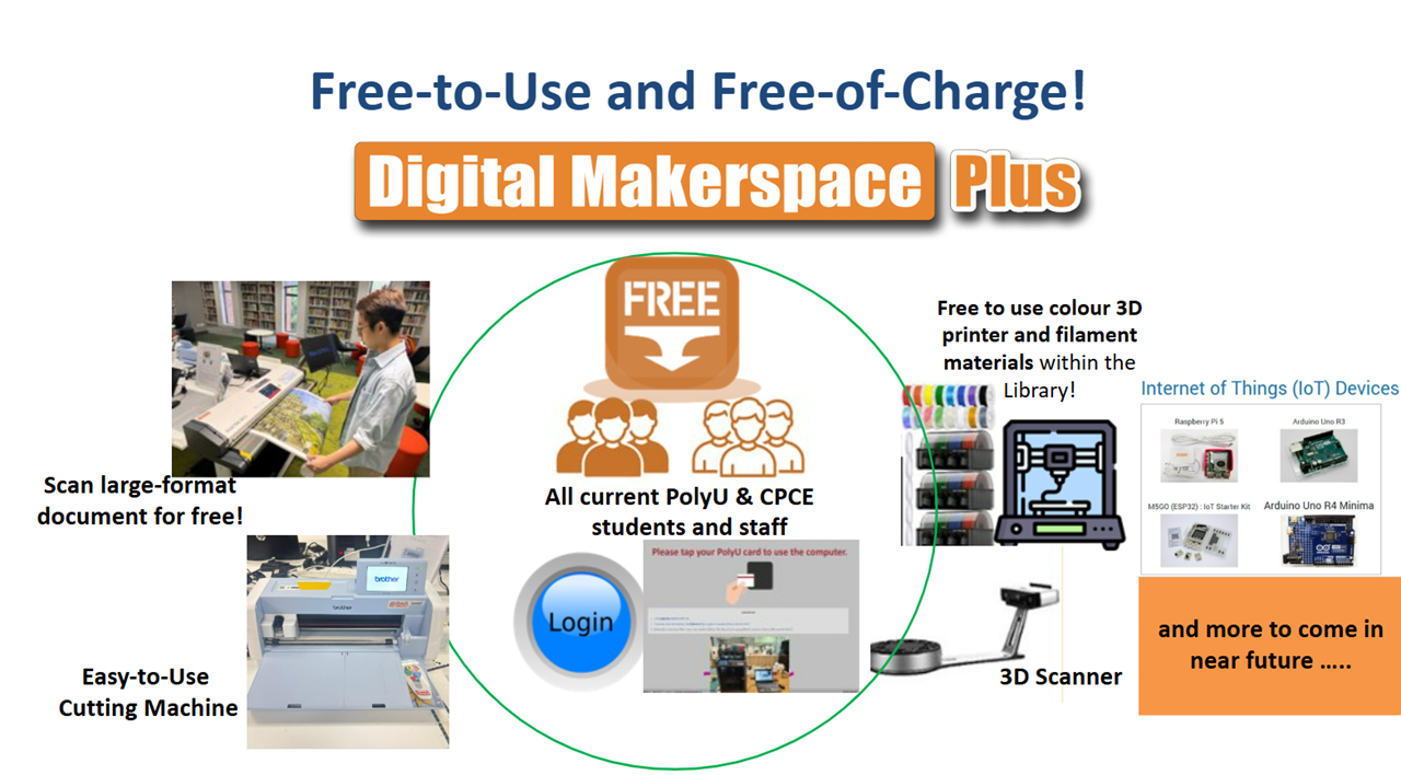 All PolyU/CPCE students and staff are warmly invited to visit, connect with the maker community, and let your imagination soar. The Digital Makerspace Plus is open during the Library’s regular hours—just drop by and start creating!